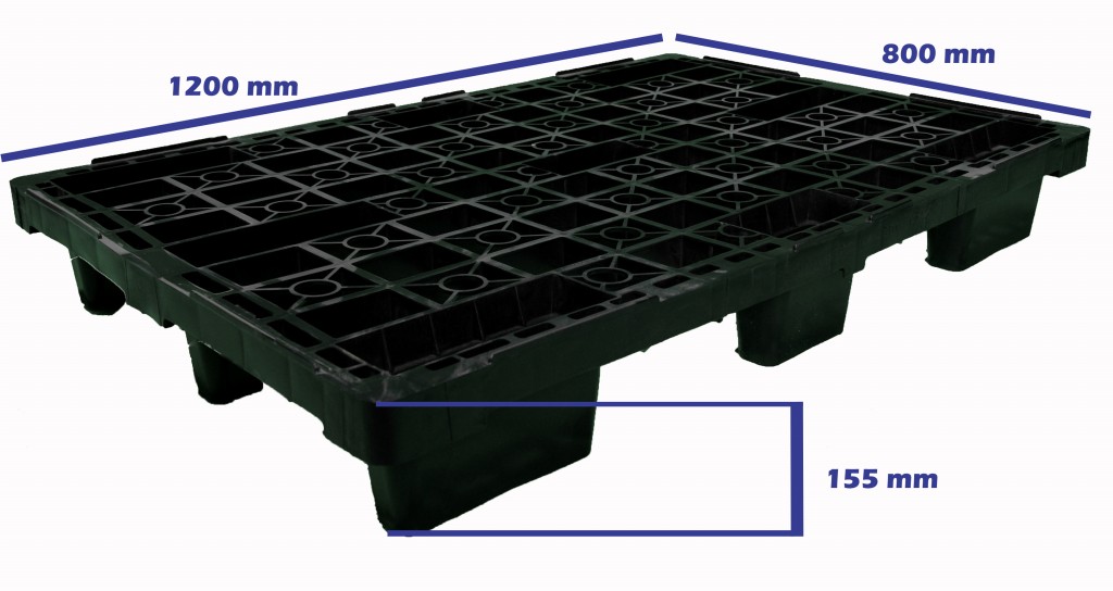 Palet de plástico. Encajable 120x80x15,5. Peso 5,30 kilogramos.