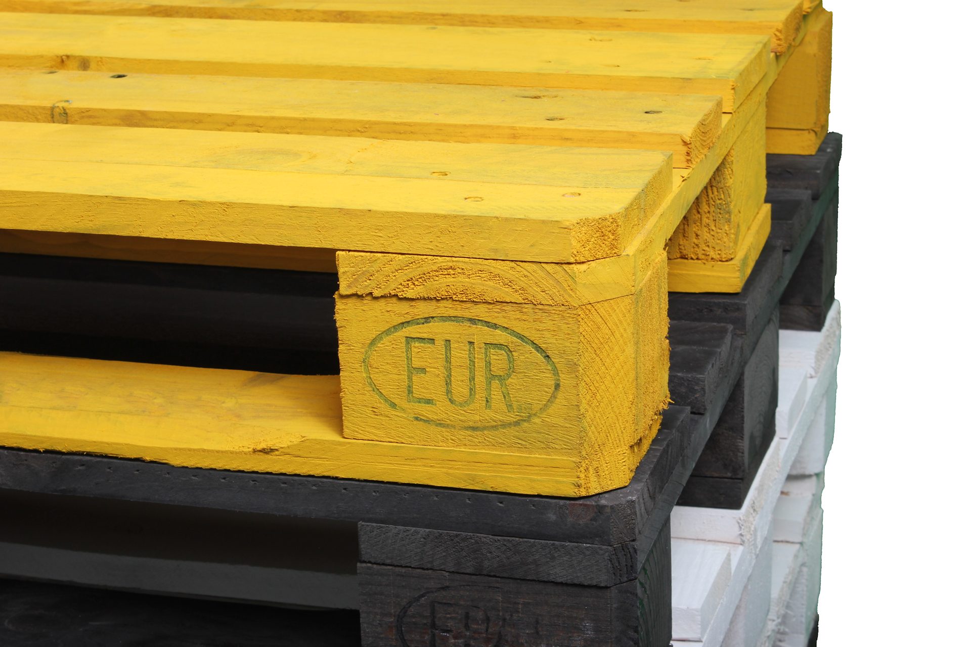 Palet pintado en color amarillo mate.